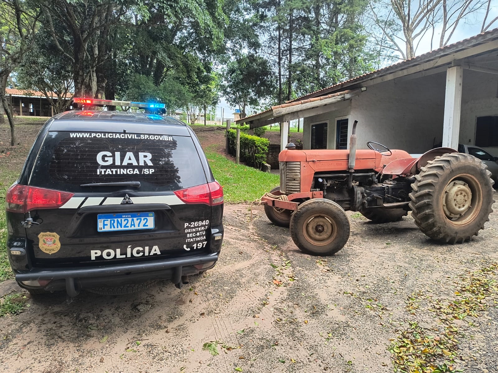 Conforme o planejamento operacional, os policiais do GIAR reuniram-se na sede da Delegacia de Polícia de Itatinga e, após o alinhamento das ações, deslocaram-se até os endereços dos investigados. A operação resultou na recuperação de um trator Massey Ferguson, modelo 65X, ano 1980, que estava armazenado em uma chácara localizada na região da Serra do Tamanduá.