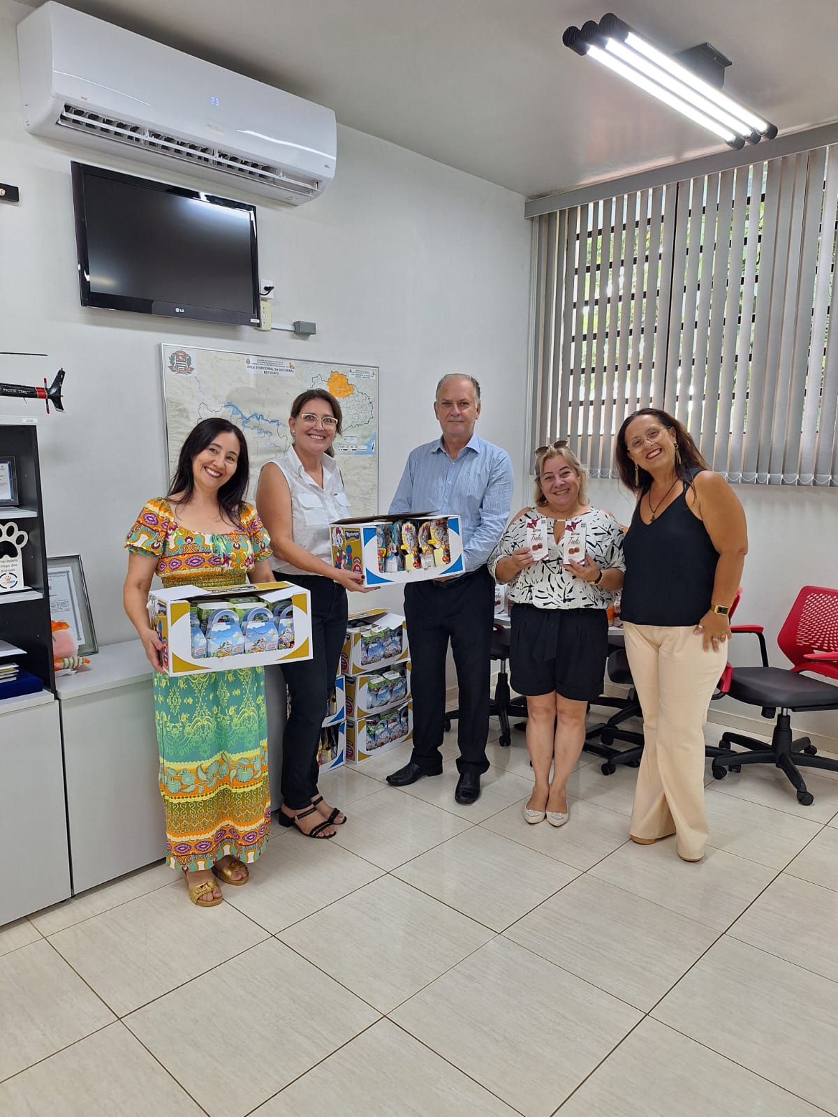 A Delegacia Seccional de Polícia de Botucatu e, através do gesto de solidariedade, comprou 255 ovos de Páscoa e distribuídos para duas creches. A CEI professora Rosemary Cassetari Ribeiro, BairroAlto (200) e a Creche Irmã Ceci do Bairro Chaparral em Rubião Júnior (55).