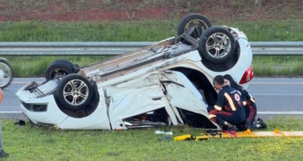 A colisão aconteceu nas proximidades do antigo trevo do DER, próximo à alça de acesso da rodovia. Com o impacto, o Sandero acabou capotando. Testemunhas relataram que o condutor da caminhonete não permaneceu no local após o acidente, deixando a área antes da chegada das equipes de atendimento.