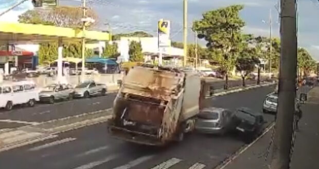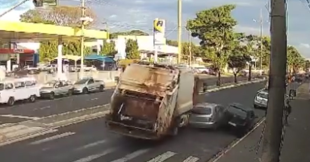 Acidente com caminhão de lixo, carro e pedestre em São Manuel