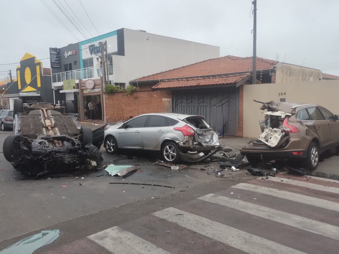 Um acidente com capotamento registrado na tarde desta segunda-feira (16), envolvendo quatro veículos na Avenida Professor Rafael Laurindo, região norte de Botucatu.