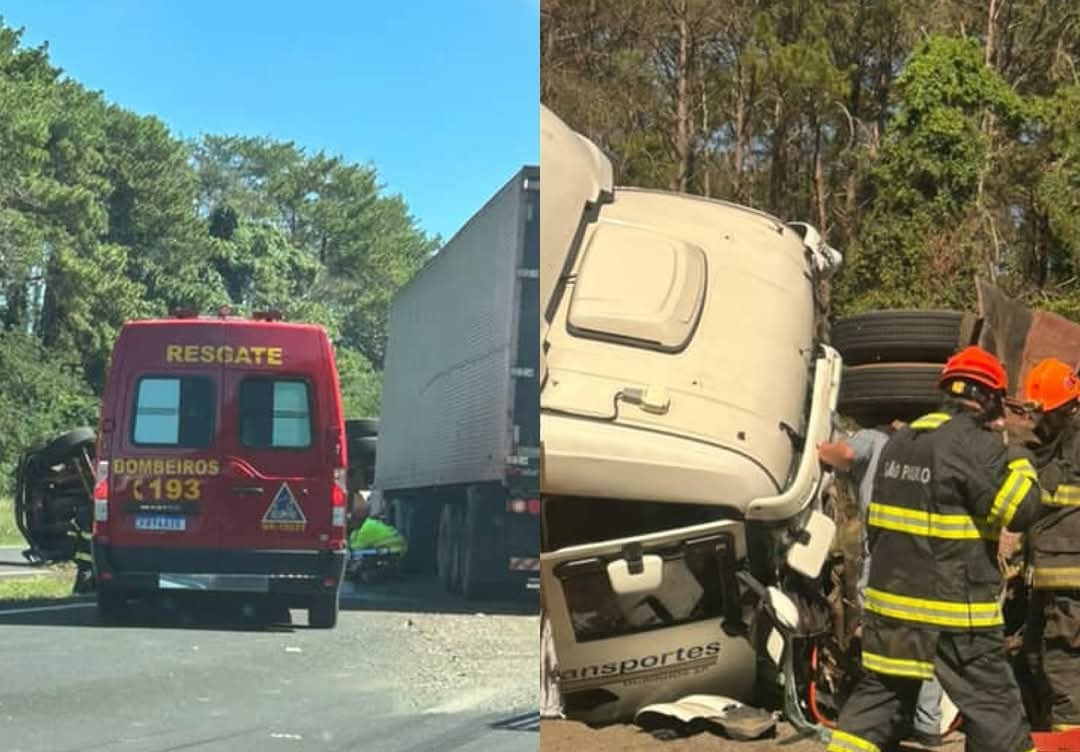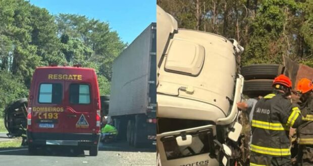 Segundo relatos do condutor da Scania, o seu veículo perdeu o freio e colidiu na traseira de um caminhão Mercedes-Benz, o empurrando para o canteiro central, onde tombou. Não há, até o momento, informação de vítimas. O SAMU, Corpo de Bombeiros, Resgaste e demais equipes da concessionária estão no local.