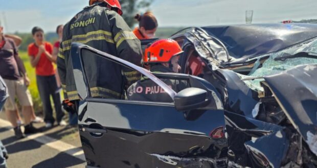 Equipes de resgate do Corpo de Bombeiros se mobilizaram para socorrer três pessoas de um carro que se envolveu em um acidente com um caminhão, na manhã desta sexta-feira (17), na rodovia Marechal Rondon (SP-300), no sentido Bauru-Agudos, na altura do centro de distribuição do Confiança, na Vila Aviação B, em Bauru.