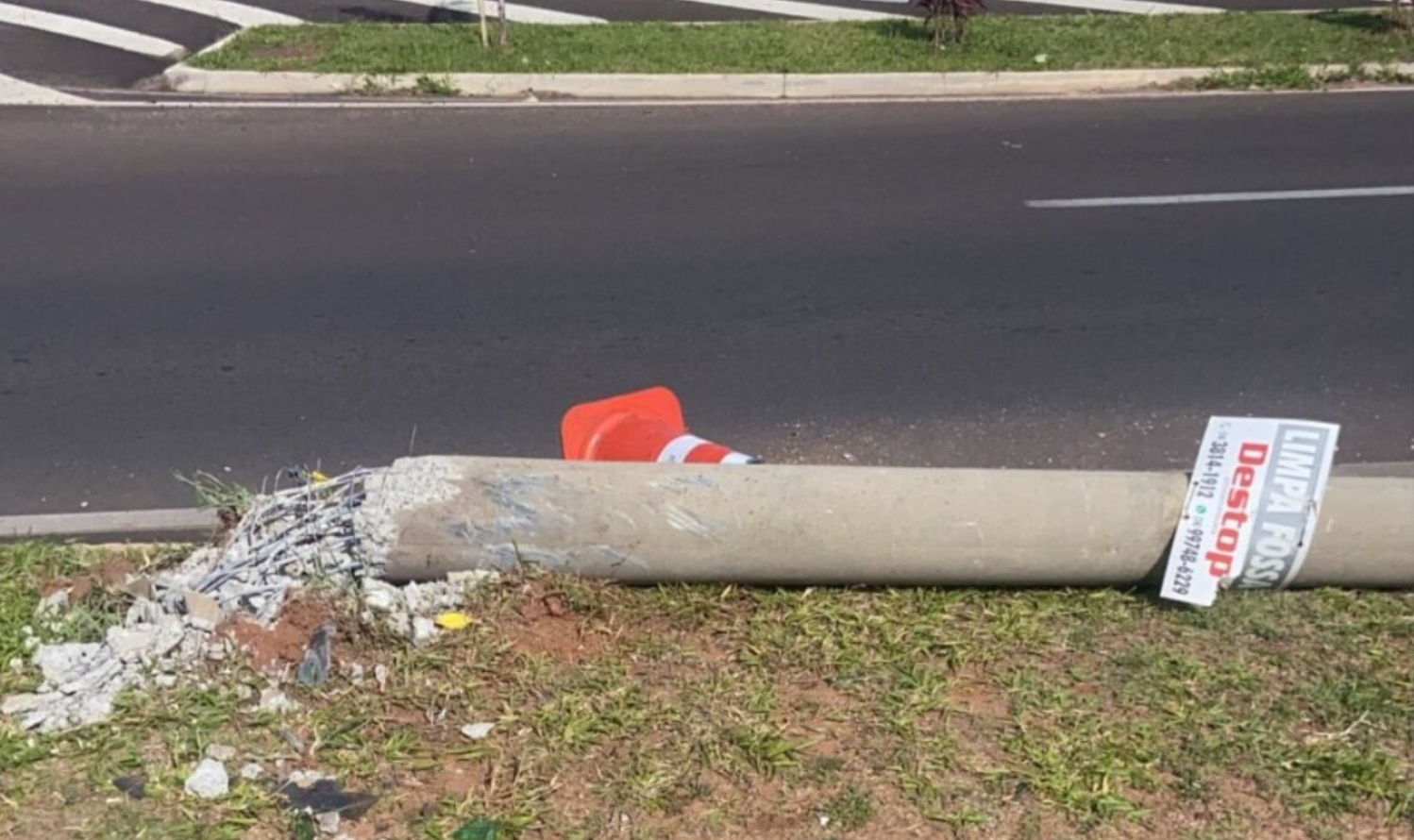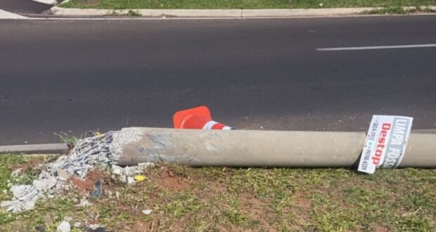 Acidente na Gastão Dal Farra derruba poste e causa interrupção de energia em Botucatu