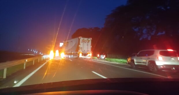 A equipe da concessionária que administra o trecho estava dando os primeiros atendimentos e sinalizando o fluxo de veículos no local