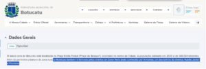 Print do Portal Transparência da atuação dos subprefeitos de Botucatu