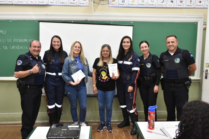 “O Projeto é realizado por funcionários do SAMU 192, voluntários, que vão até as escolas e por meio de vídeos, exemplos, conversas, quizz e panfletos, esclarecem dúvidas, ensinam o certo e o errado nos casos de acidentes e o que fazer em cada situação”, explicou Priscila.