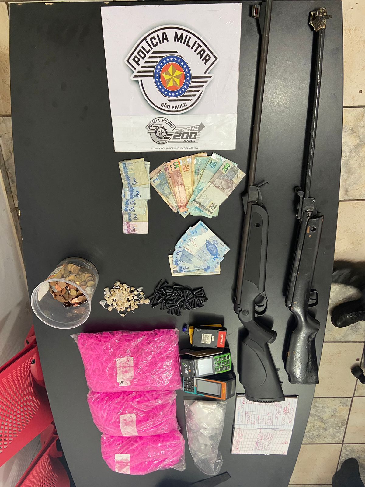 Policiais do 12° BPM/I prenderam em flagrante na noite de sexta-feira (11), na Rodovia Geraldo de Barros (SP191), Anhembi/SP, um indivíduo pelos crimes de porte ilegal de arma de fogo, tráfico de drogas e averiguação de nota falsa.