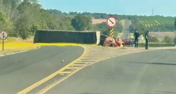 De acordo com as primeiras informações, o motorista perdeu o controle do veículo, resultando no tombamento. A carreta ficou atravessada na pista, e a carga espalhada na via, causando a interdição parcial e impactando o fluxo de veículos na região.