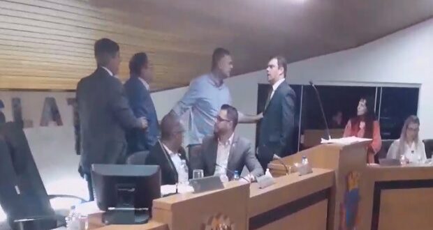 O clima começou a esquentar quando o vereador Roberto Araújo fazia uso da palavra. Durante sua fala, uma munícipe que acompanhava a sessão do plenário, começou a se manifestar contra o parlamentar, o que desagradou o líder do prefeito na Câmara.