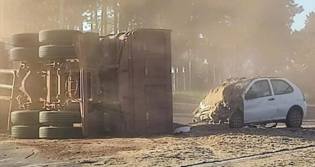 Questionado, ele informou aos policiais rodoviários que trafegava pela rodovia no sentido Avaré, após ter carregado areia no porto, quando próximo ao local do acidente, ao desviar-se de um veículo de cor vermelha que estava no acostamento, acabou por puxar a direção invadindo a faixa contrária, quando o veículo das vítimas o atingiu lateralmente, causando seu abalroamento e tombando seu veículo.
