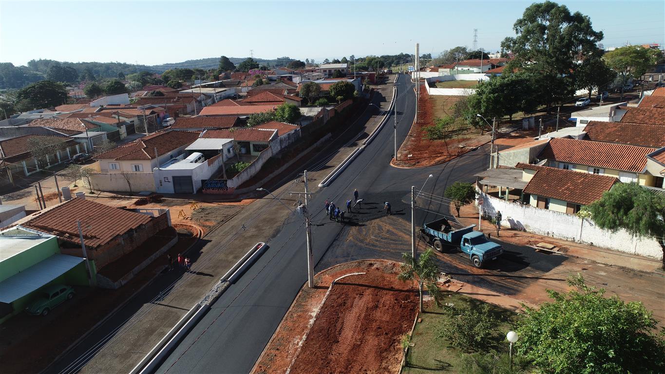 Além das vias principais, também foi executada a pavimentação das ruas de acesso e finalização do canteiro central. Na próxima etapa deve ser executada a calçada e projeto de paisagismo, pintura e sinalização de solo.