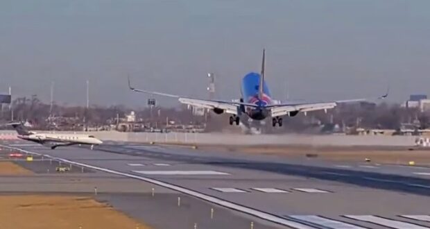 O vídeo mostra o momento em que o avião da Southwest Airlines quase toca o solo no Aeroporto Internacional Midway, o segundo maior de Chicago. Logo em seguida, a aeronave volta a ganhar altitude.