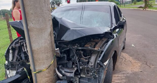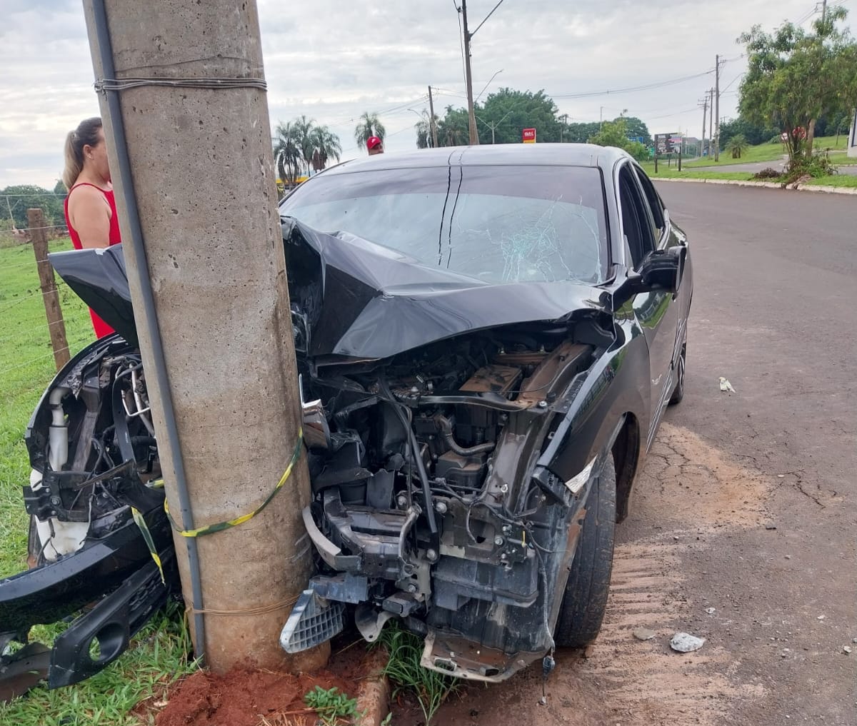 Por motivos a serem apurados, ele bateu violentamente contra um poste enquanto seguia pelo sentido bairro/centro.