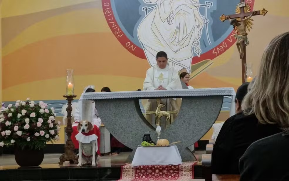 Barretos: Cachorro adotado por padre “vira coroinha” e participa de missas em igreja