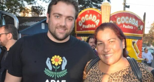 Claudia Lobo ao lado do presidente da Apae, Roberto Franceschetti Filho