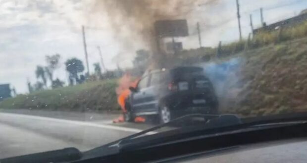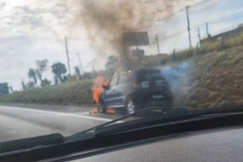 Como o condutor parou o veículo no acostamento, não prejudicou o fluxo de veículos nem colocou outros automóveis em risco. A Polícia Militar Rodoviária esteve no local e não há registro de feridos, apenas danos materiais.