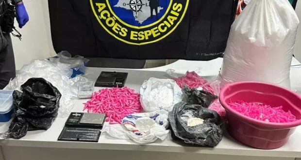Os policiais constataram, então, tratar-se de uma refinaria de drogas ilícitas, onde havia cocaína espalhada por vários locais do apartamento, além de apetrechos utilizados na confecção e embalo de drogas, informa a corporação.