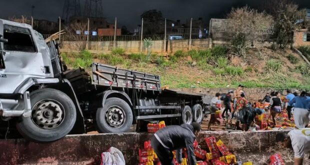 Fardos de uma carga de cerveja foram saqueados depois que o caminhão que transportava a bebida bateu na mureta no Anel Rodoviário de Belo Horizonte e tombou na altura do bairro Palmeiras, região Oeste da capital. O acidente ocorreu na noite dessa terça-feira (15) e policiais militares usaram bombas para dispersar as pessoas que furtavam a carga. Contudo, após horas de espera por um representante da empresa, a retirada da cerveja das pistas foi liberada pelas autoridades.