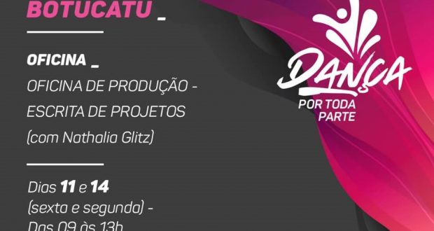 Estão abertas inscrições para Oficina de Produção – Escrita de Projetos, com Nathalia Glitz. A formação é gratuita e on-line e faz parte do projeto Dança por toda parte, uma iniciativa da Cooperativa Paulista de Dança com o apoio da Secretaria Municipal de Cultura, patrocinado pela Secretaria de Cultura e Economia Criativa do Estado de São Paulo.