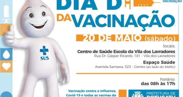 No próximo sábado, 20, dois postos estarão abertos das 8 às 17 horas vacinando contra a Covid-19, inclusive com doses pediátricas, influenza e todas as vacinas do Plano Nacional de Imunização, um no Centro (Espaço Saúde “Dra. Cecília Magaldi” – Av. Santana, 323 – ao lado do SAMU) e outro na Vila dos Lavradores (Centro de Saúde Escola da Vila dos Lavradores –  Rua Doutor Gaspar Ricardo Júnior, 181).