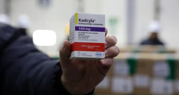 O Ministério da Saúde recebeu, nesta segunda-feira (13), o primeiro lote do medicamento trastuzumabe entansina, incorporado ao Sistema Único de Saúde (SUS), em 2022, para o tratamento do câncer de mama. O remédio é indicado para quem ainda continuou com a doença após a quimioterapia inicial, geralmente em casos de câncer de mama HER2-positivo em estágio 3, informou a pasta.