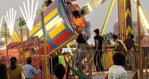 De acordo com o jornal The Times of India, 26 pessoas estavam no brinquedo no momento do incidente. Um vídeo que circula nas redes sociais mostra quando uma das extremidades da estrutura se solta após uma rotação no próprio eixo. Em seguida, o equipamento despenca e atinge o chão com força, causando pânico entre os presentes.