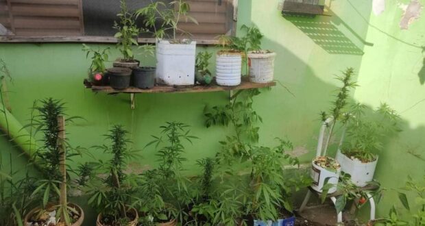 Ao verificar o lado de fora da residência, os policiais localizaram diversas plantas de maconha plantadas para consumo.