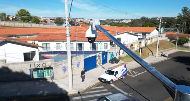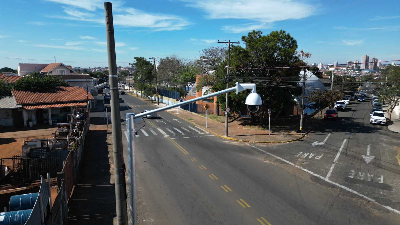 Estão sendo instaladas as 40 câmeras do tipo PTZ em frente escolas públicas da Cidade. Os equipamentos permitirão o monitoramento principalmente da área externa de escolas e também das vias públicas.