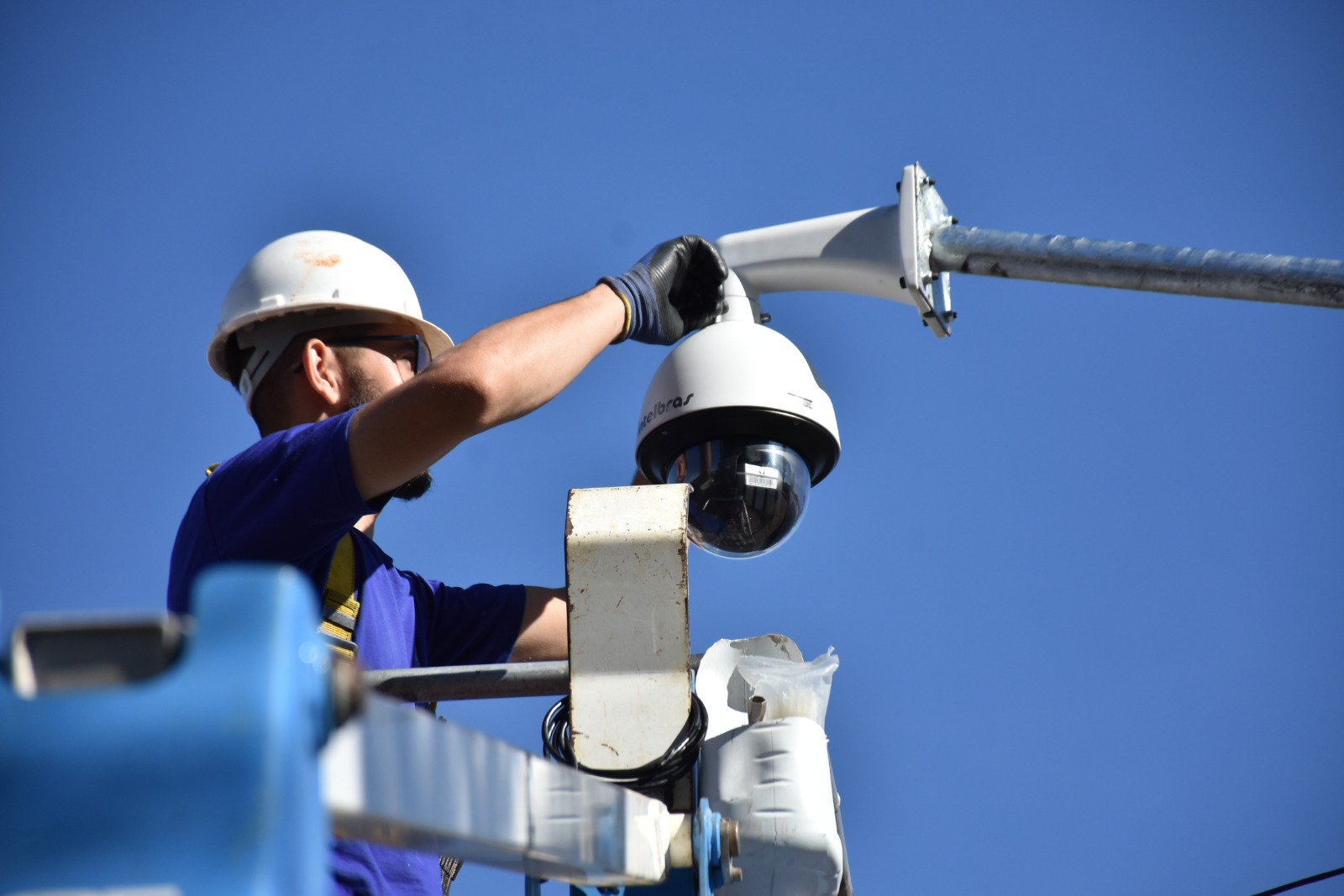 A câmera do modelo PTZ tem capacidade de monitoramento 360º, com longo alcance e funcionamento 24 horas por dia. As imagens produzidas por esses equipamentos serão monitoradas pelo Centro de Operações Integradas da Muralha Virtual, agilizando o atendimento em caso de necessidade.
