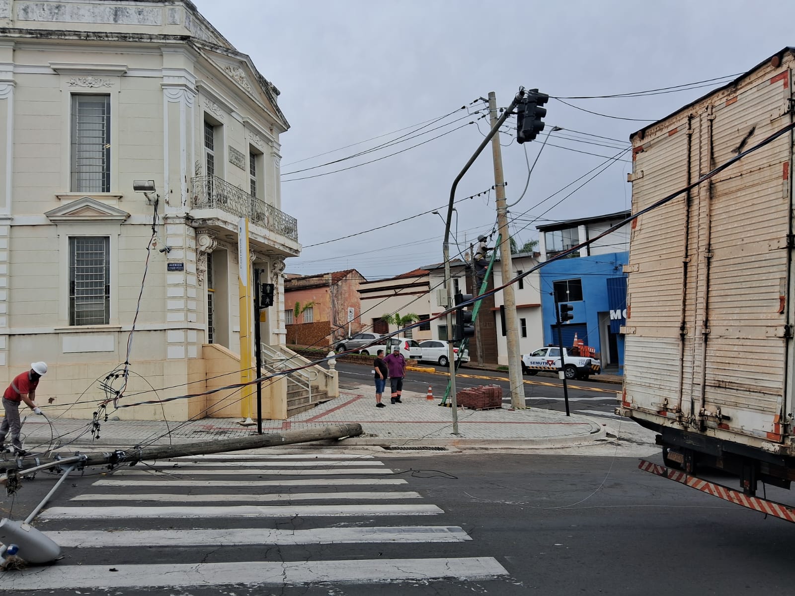 Caminhão atinge fiação elétrica em cruzamento central de Botucatu e causa interdição de tráfego