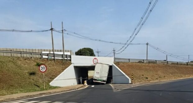 O pontilhão, que tem 3,2 metros de altura, não permitiu a passagem do veículo, que ficou preso na estrutura. Equipes especializadas foram acionadas para realizar a remoção do caminhão e liberar a via.