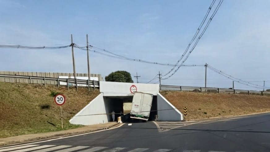 Acidentes como esse reforçam a importância da sinalização adequada e da atenção dos motoristas à altura de seus veículos ao trafegar em vias com estruturas limitadas.