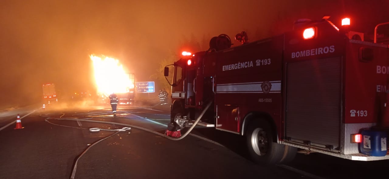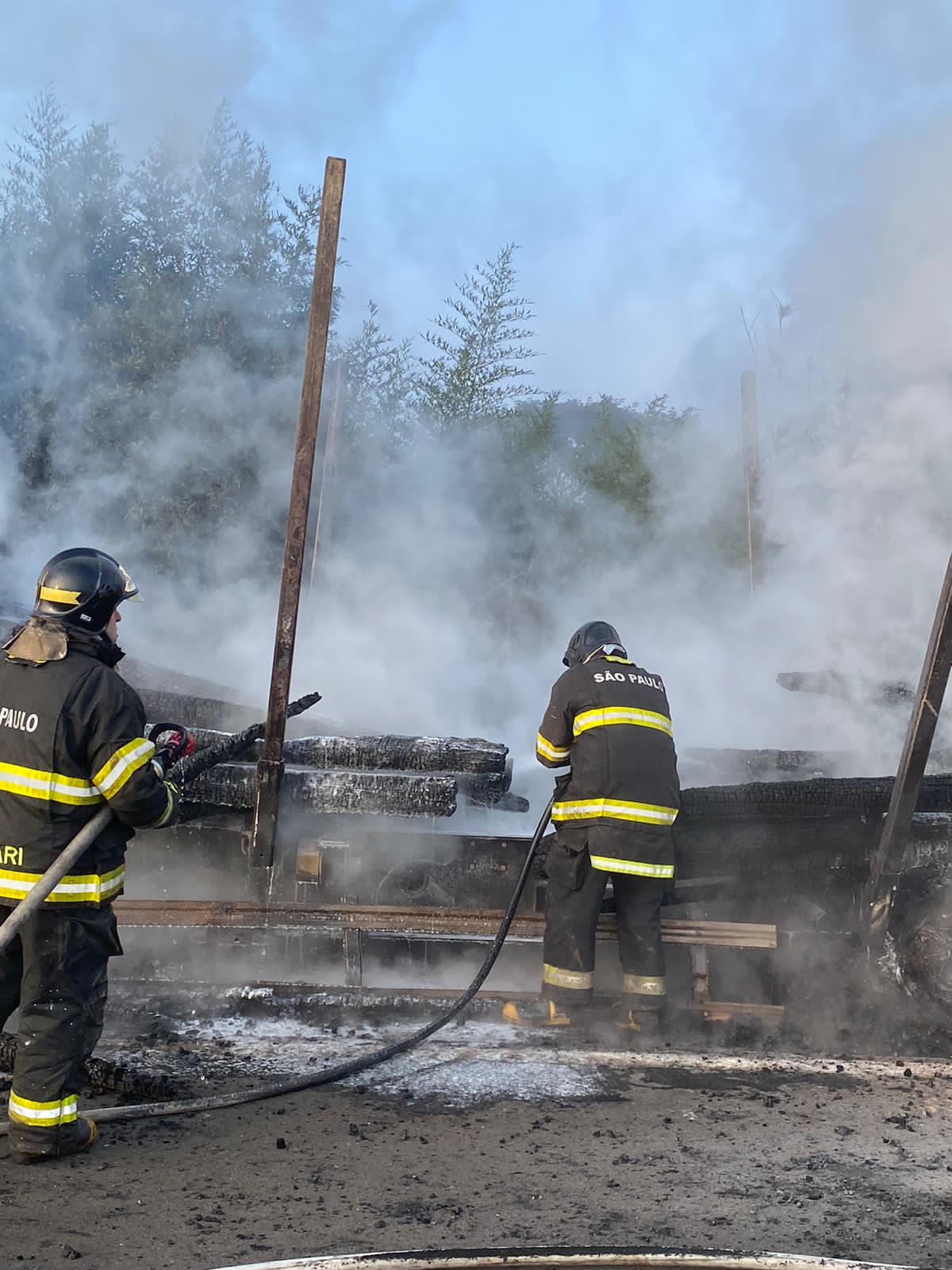Na madrugada desta quarta-feira, (30), por volta das 04:00hs o Corpo de Bombeiros de Botucatu foi acionado para apoiar a equipe da Base de Itatinga em um incêndio em um treminhão carregado com toras de eucalipto, pela Rodovia Castelo Branco km, 209 sentido capital.