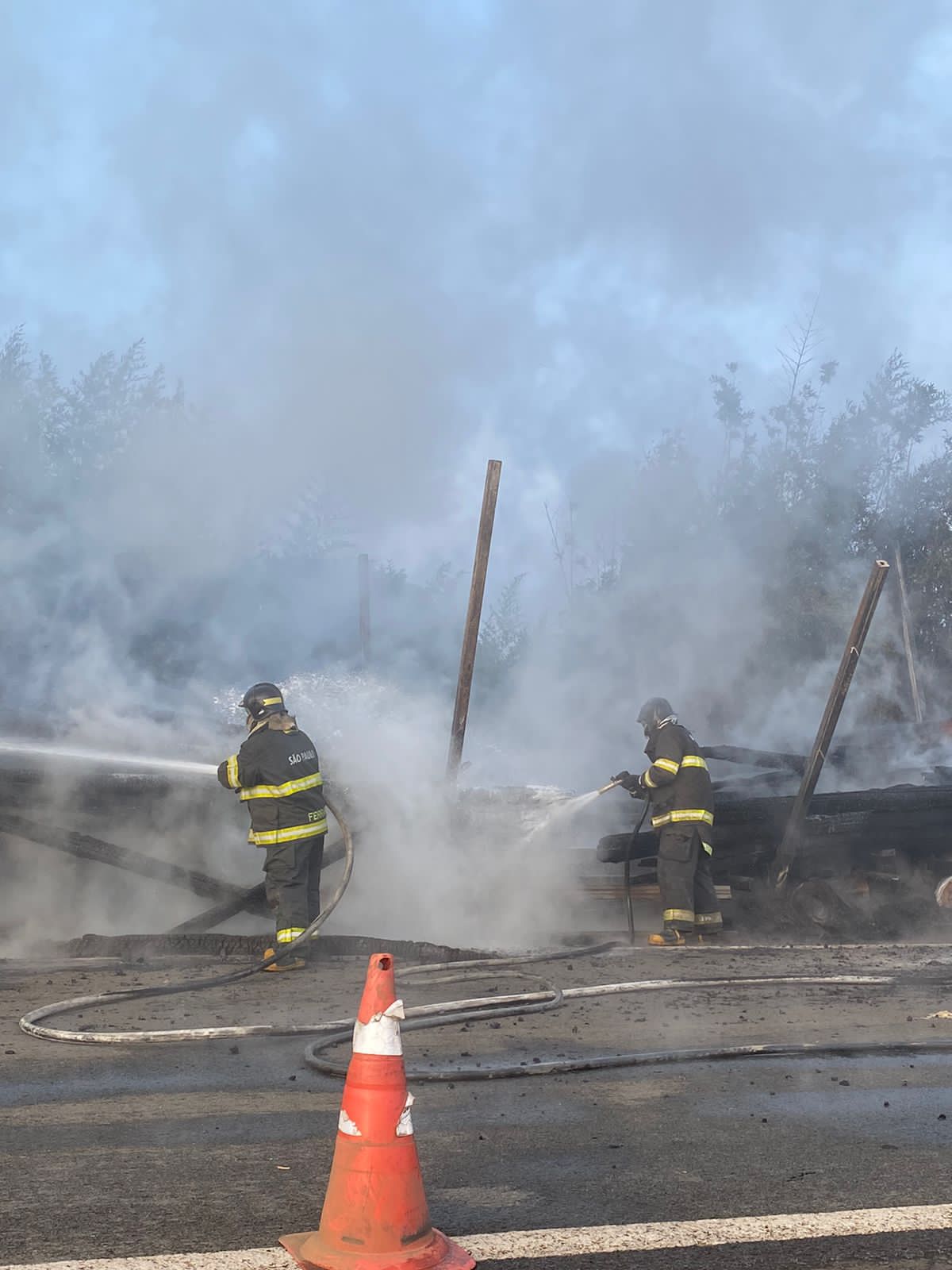 Quando chegou ao local, foi verificado que o motorista já havia conseguido retirar o cavalo mecânico, e não sofreu nenhuma lesão, ficando só a carreta, que já estava tomada pelas chamas. Nesse instante foi solicitado apoio do PAM ( plano de auxílio mútuo da nossa região), o qual destinou mais 3 caminhões pipas e uma máquina retroescavadeira que auxiliou na retirada do material da carreta.