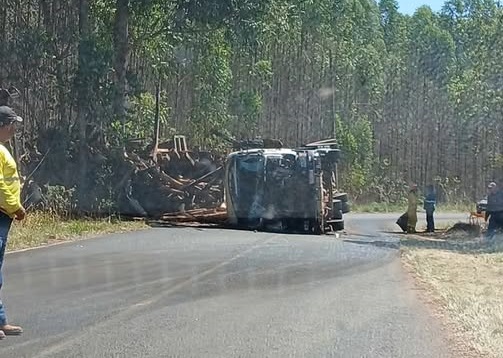 Um caminhão carregado com toras de madeira tombou na quarta-feira (17), na estrada vicinal que conecta os municípios de Avaré e Itatinga. O acidente ocorreu em uma curva da via.