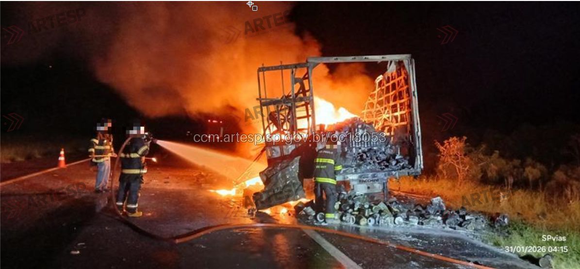 Um caminhão foi destruído por um incêndio na madrugada de sábado (31), na Rodovia Castello Branco (SP-280), em Avaré. O incidente gerou transtornos ao trânsito e mobilizou equipes de bombeiros, concessionária e órgãos ambientais para o atendimento.