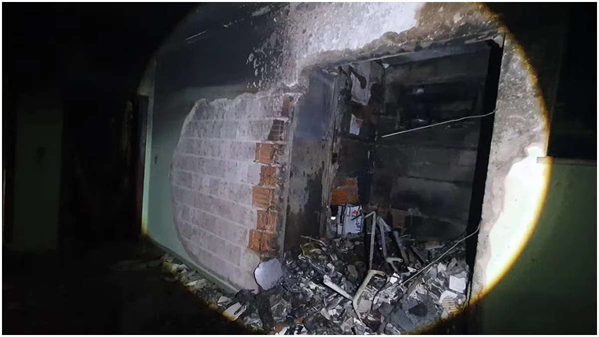 Fotos internas feitas por uma equipe da Defesa Civil mostra que o imóvel ficou destruído após a explosão. O Corpo de Bombeiros também foi acionado para conter as chamas.