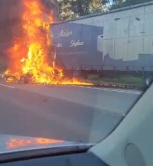 Um acidente ocorrido na perigosa SP-258 – Rodovia Francisco Alves Negrão, região do município de Capão Bonito, deixou duas mortes, uma humana e uma animal e uma carreta incendiada.
