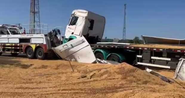 A carga de grãos tombou próximo ao acostamento e uma das faixas precisou ser interditada para que a equipe de resgate pudesse remover a carreta. O trecho foi liberado após mais de duas horas após o acidente, por volta das 10h50.