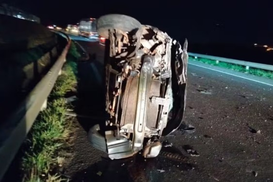 Apesar do capotamento, o tráfego seguiu sem maiores complicações na rodovia.