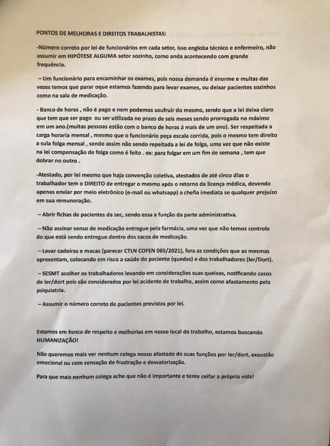 Estamos em busca de respeito e melhorias em nosso local de trabalho, estamos buscando HUMANIZAÇÃO!