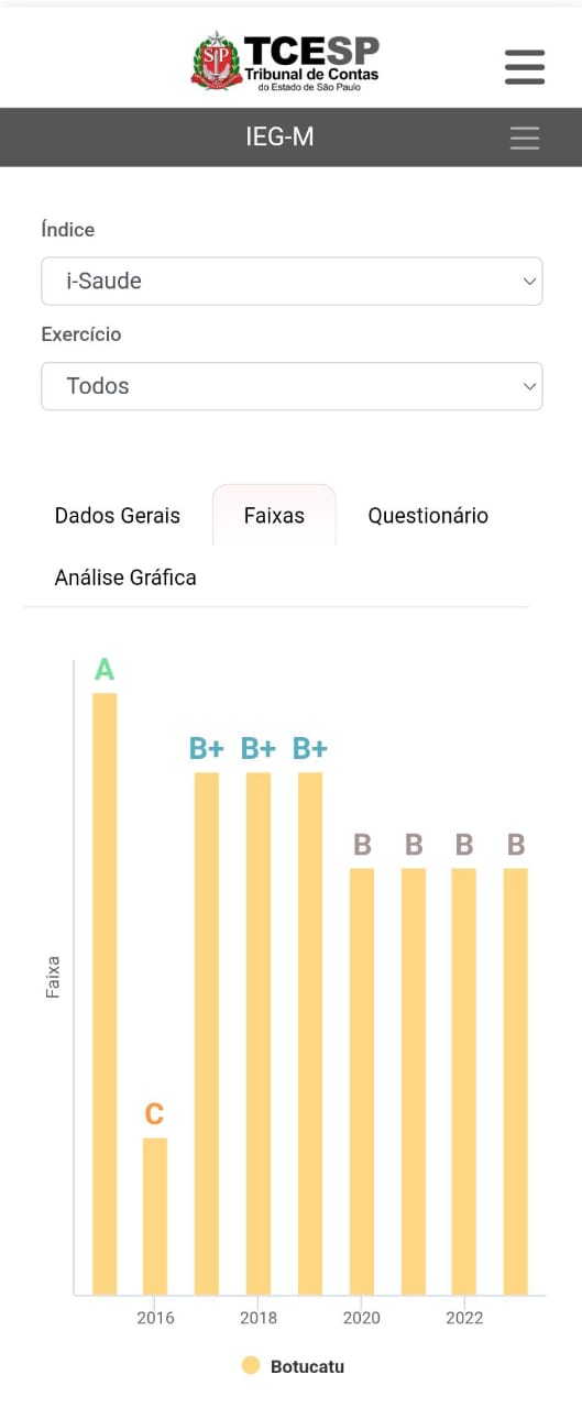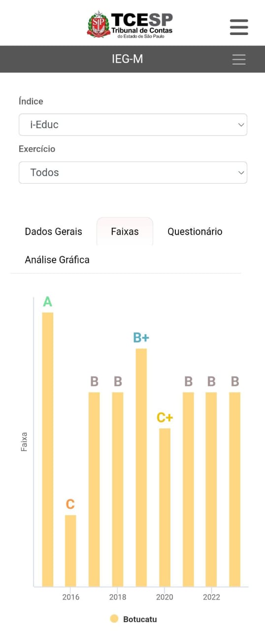 Botucatu está com categoria geral B o que pode indicar um desempenho razoável na gestão pública da cidade. Mas não se destaca como a melhor cidade do Estado; e muito menos, do País.