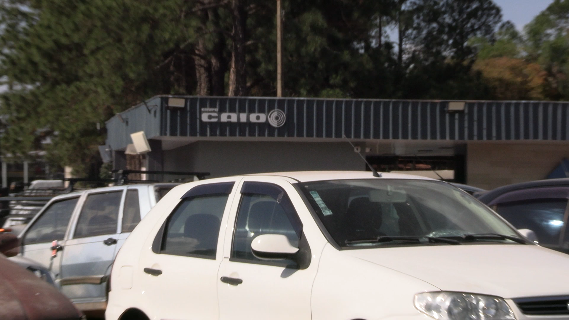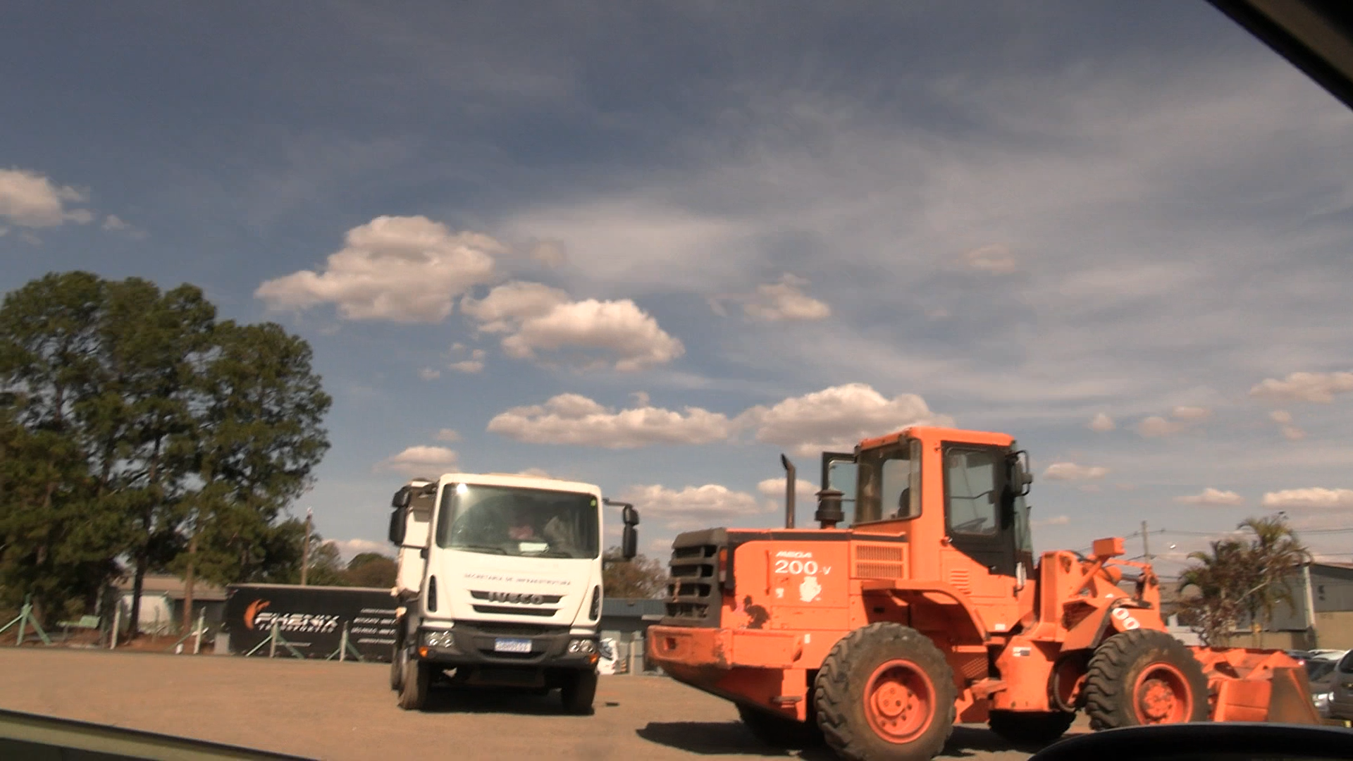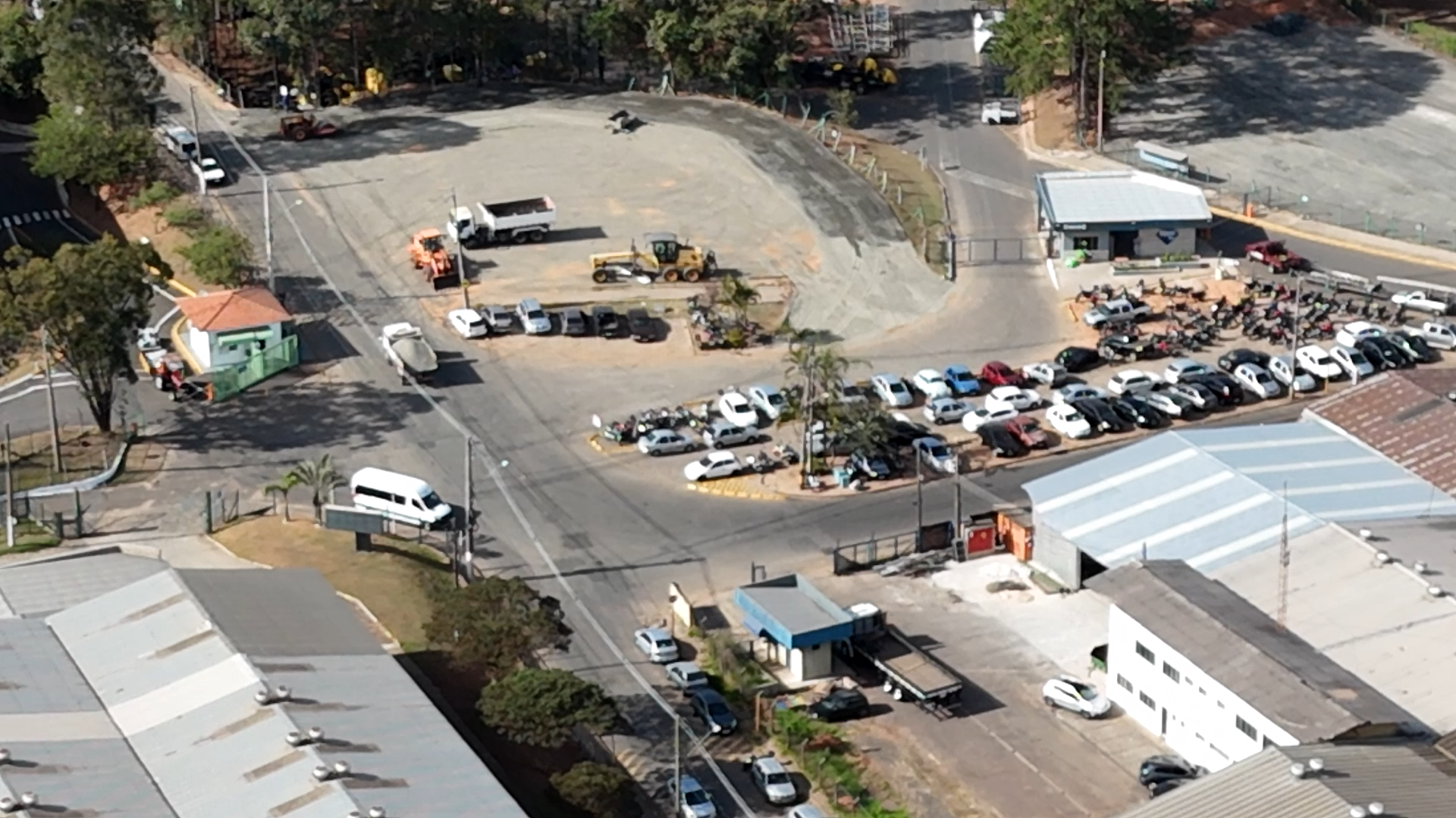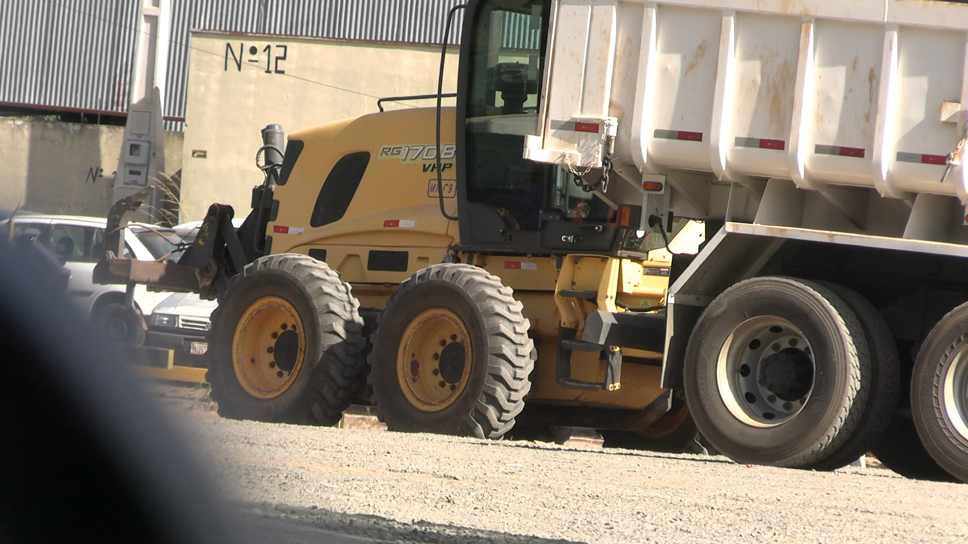 Máquinas e funcionários da Prefeitura foram flagrados realizando obras no pátio do estacionamento privativo da empresa Caio Induscar, destinado exclusivamente aos seus colaboradores.