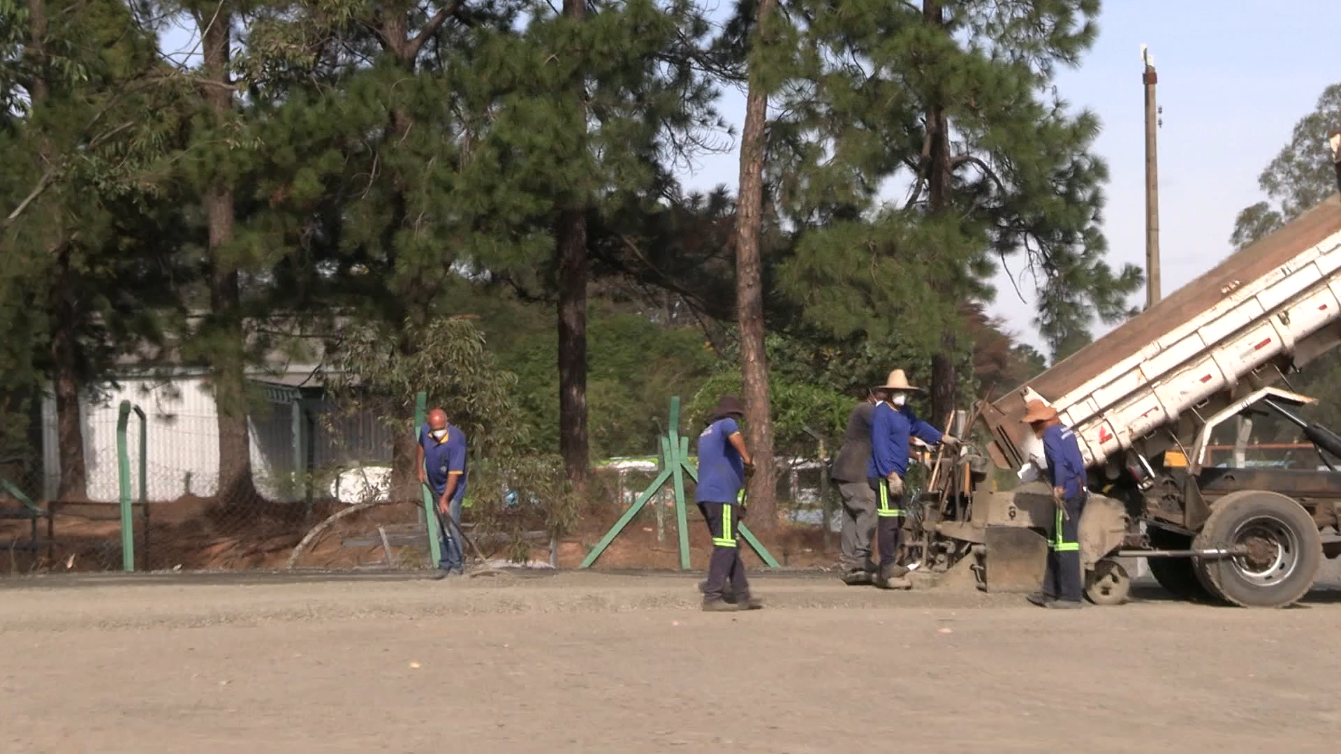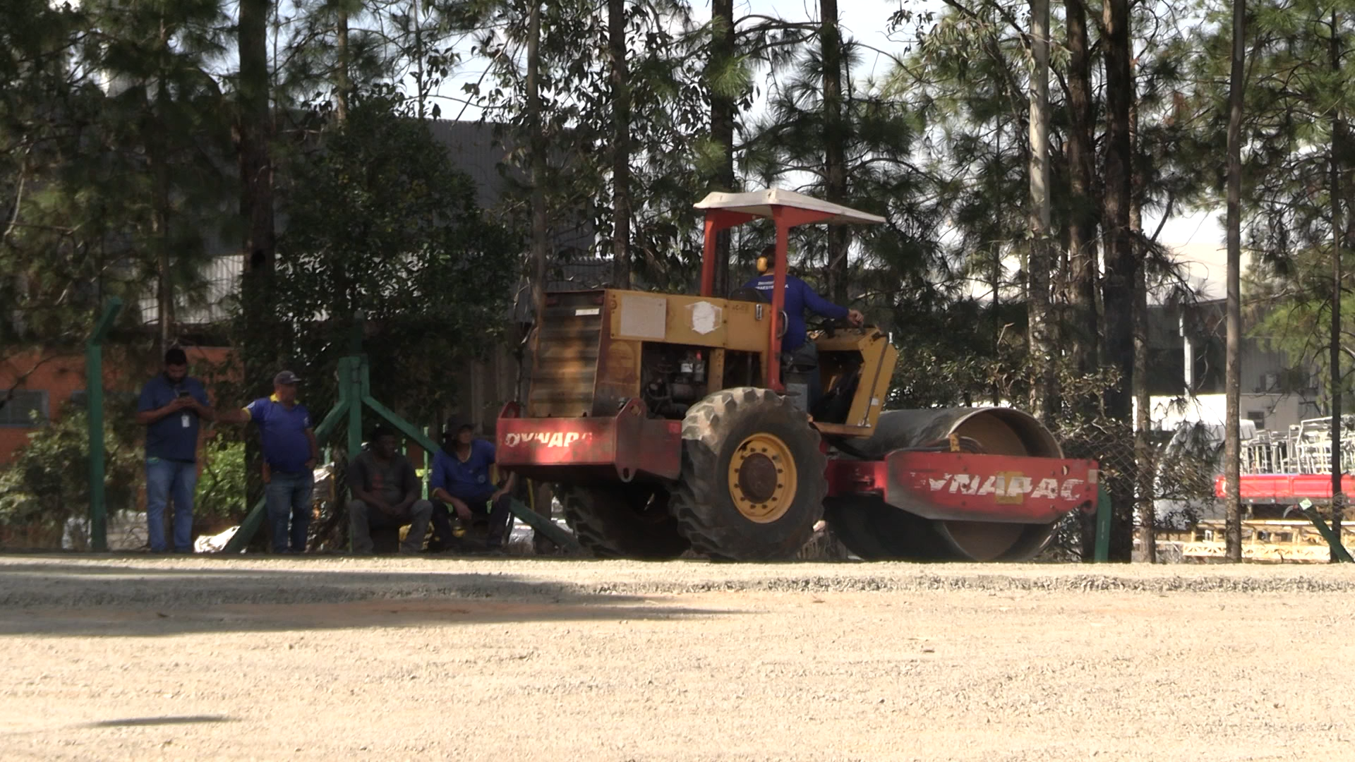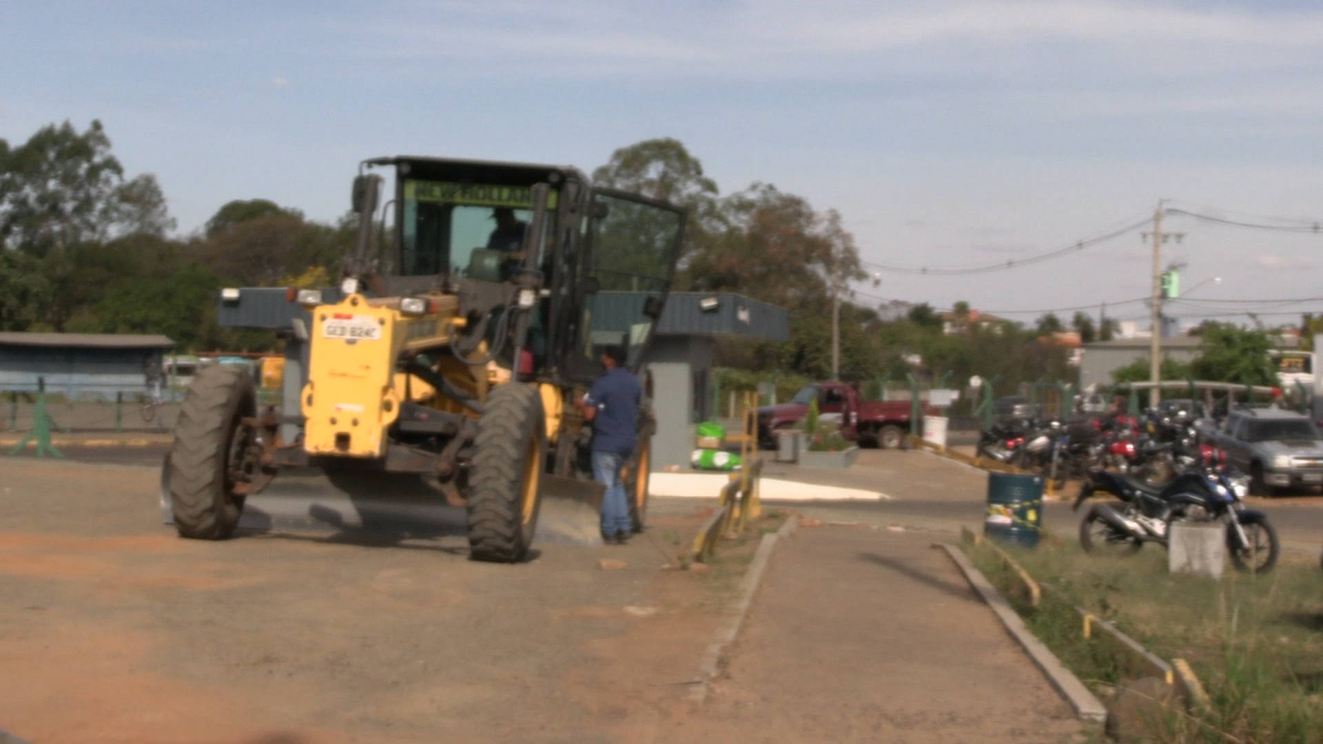 Máquinas e funcionários da Prefeitura foram flagrados realizando obras no pátio do estacionamento privativo da empresa Caio Induscar, destinado exclusivamente aos seus colaboradores.
