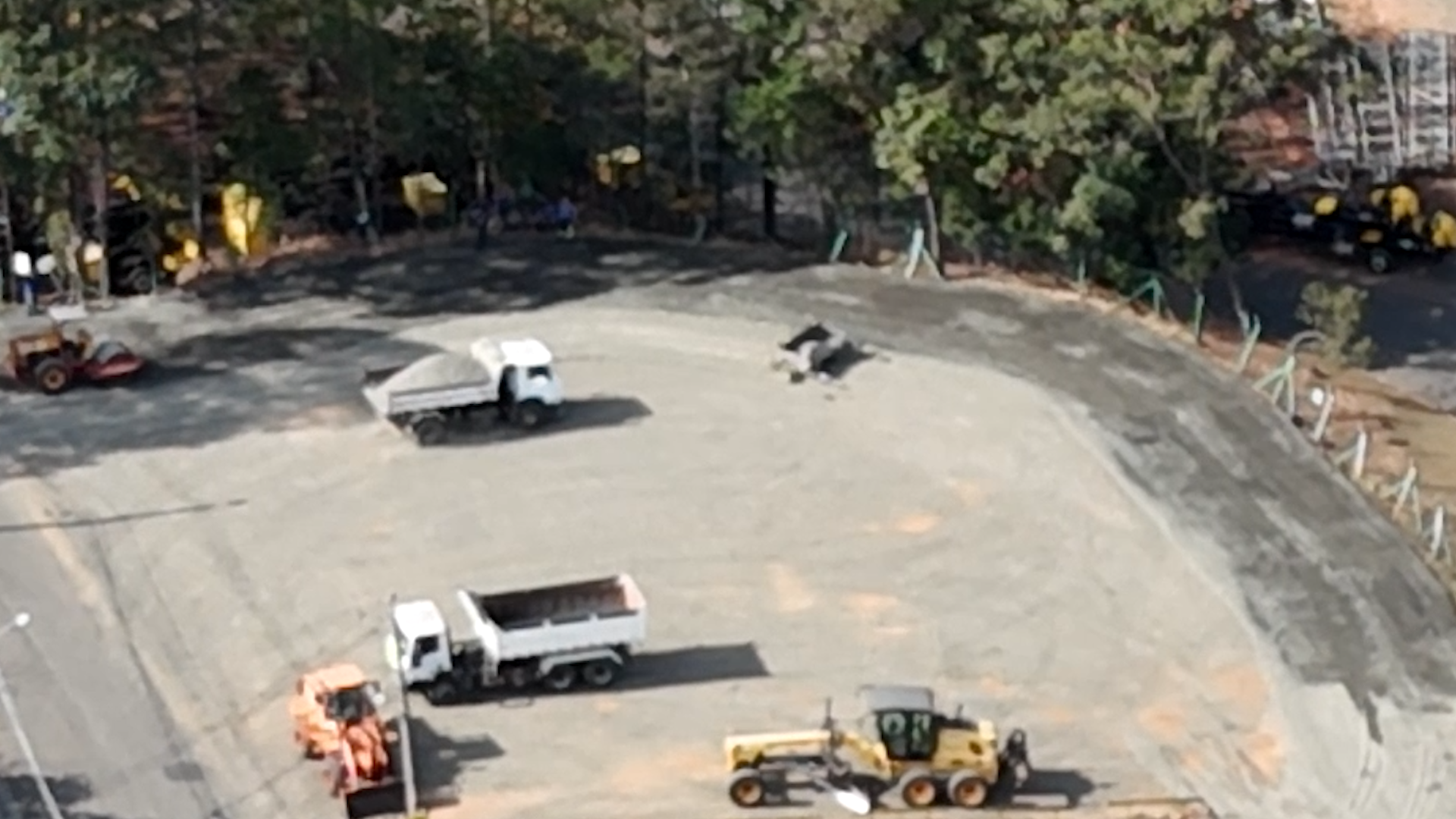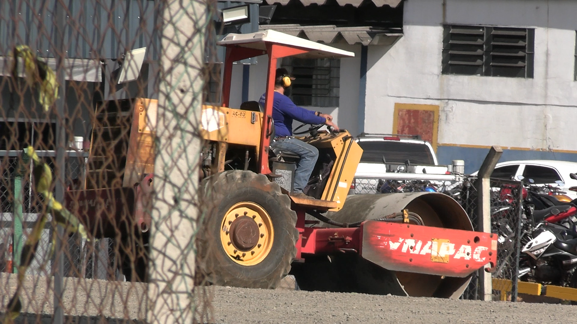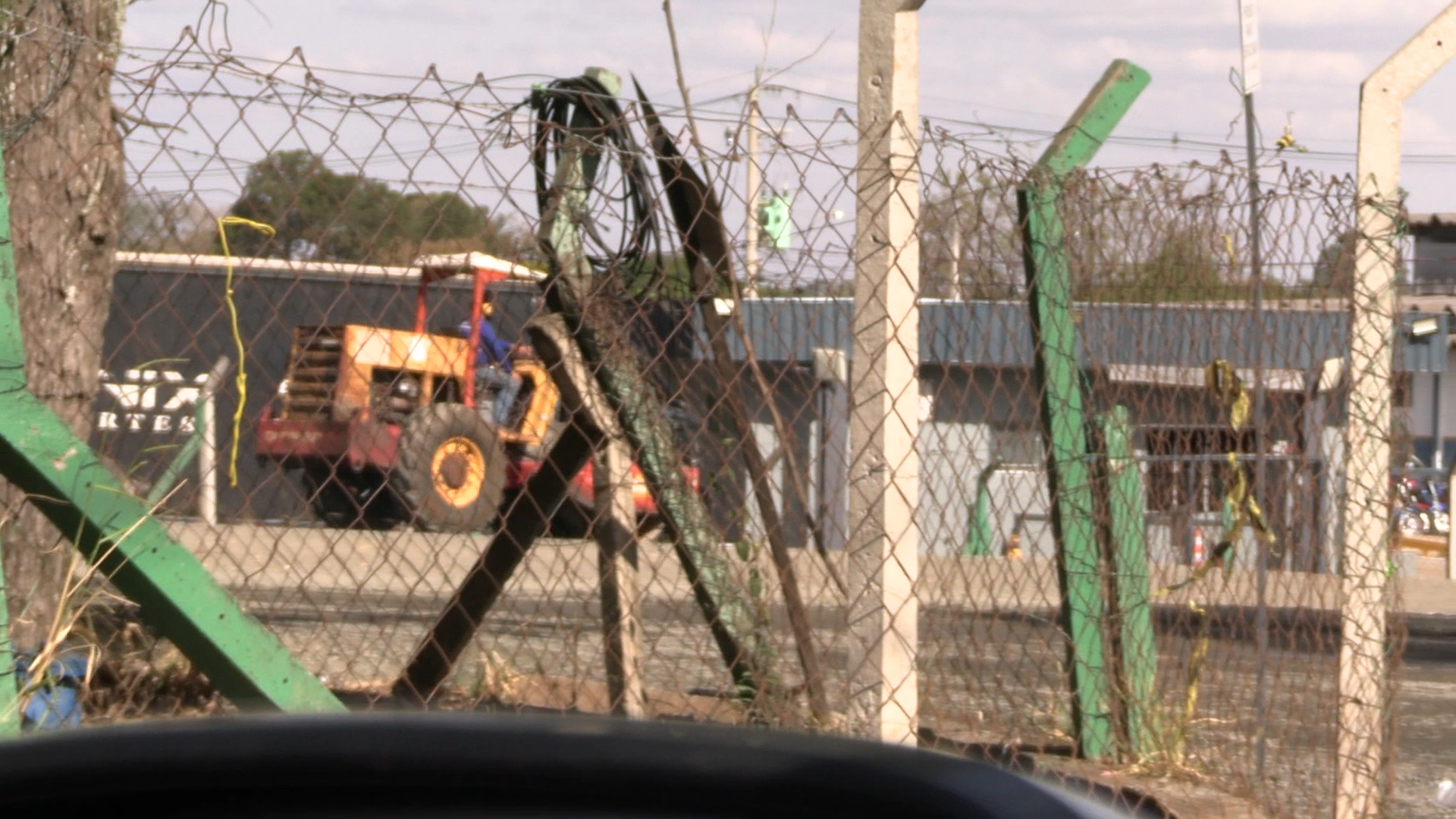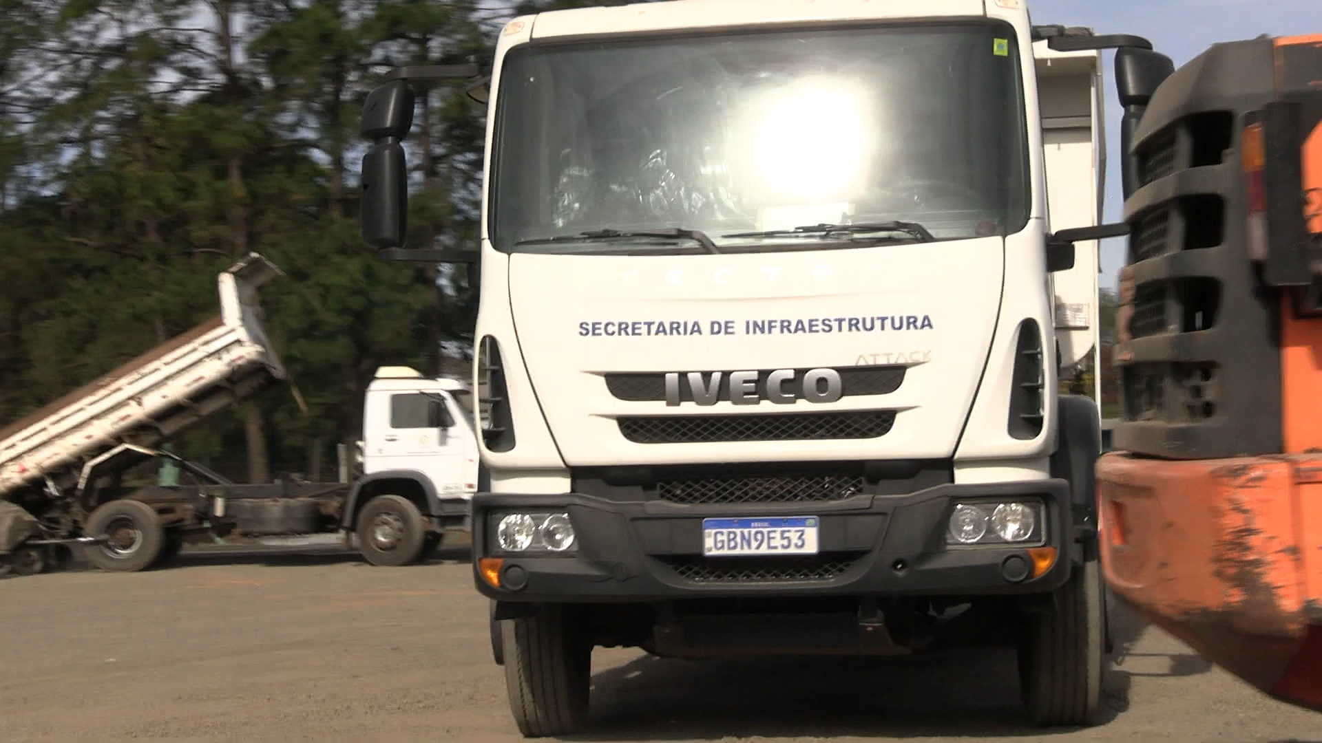 Máquinas e funcionários da Prefeitura foram flagrados realizando obras no pátio do estacionamento privativo da empresa Caio Induscar, destinado exclusivamente aos seus colaboradores.