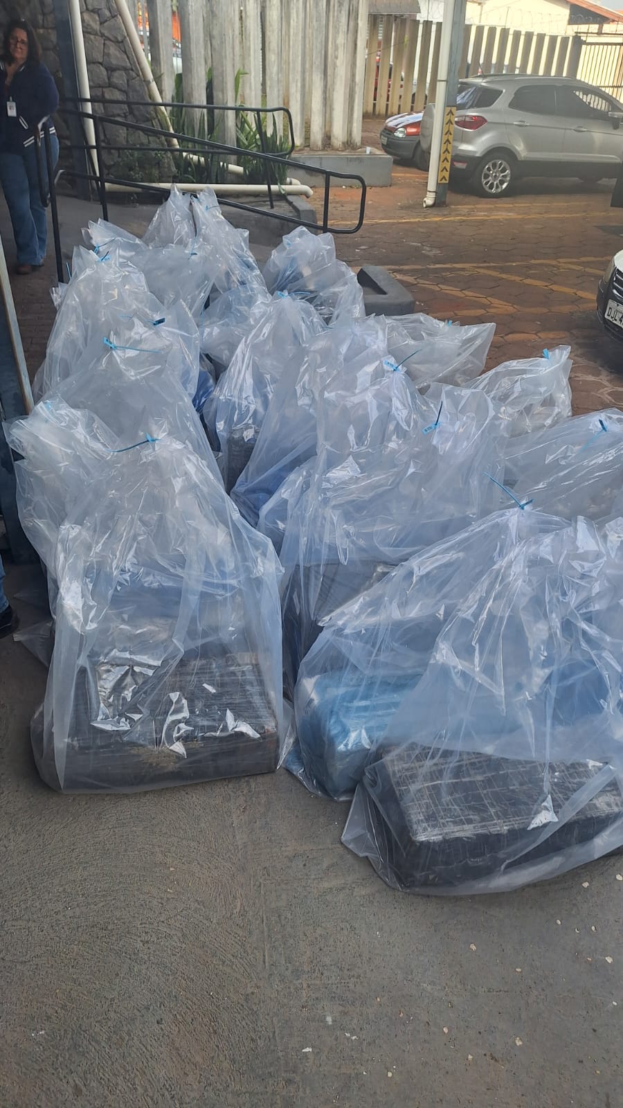 A carreta, com placas do Paraguai, foi interceptada quando transportava a substância entorpecente em direção à grande São Paulo, além de um veículo Toyota que fazia a função de batedor.