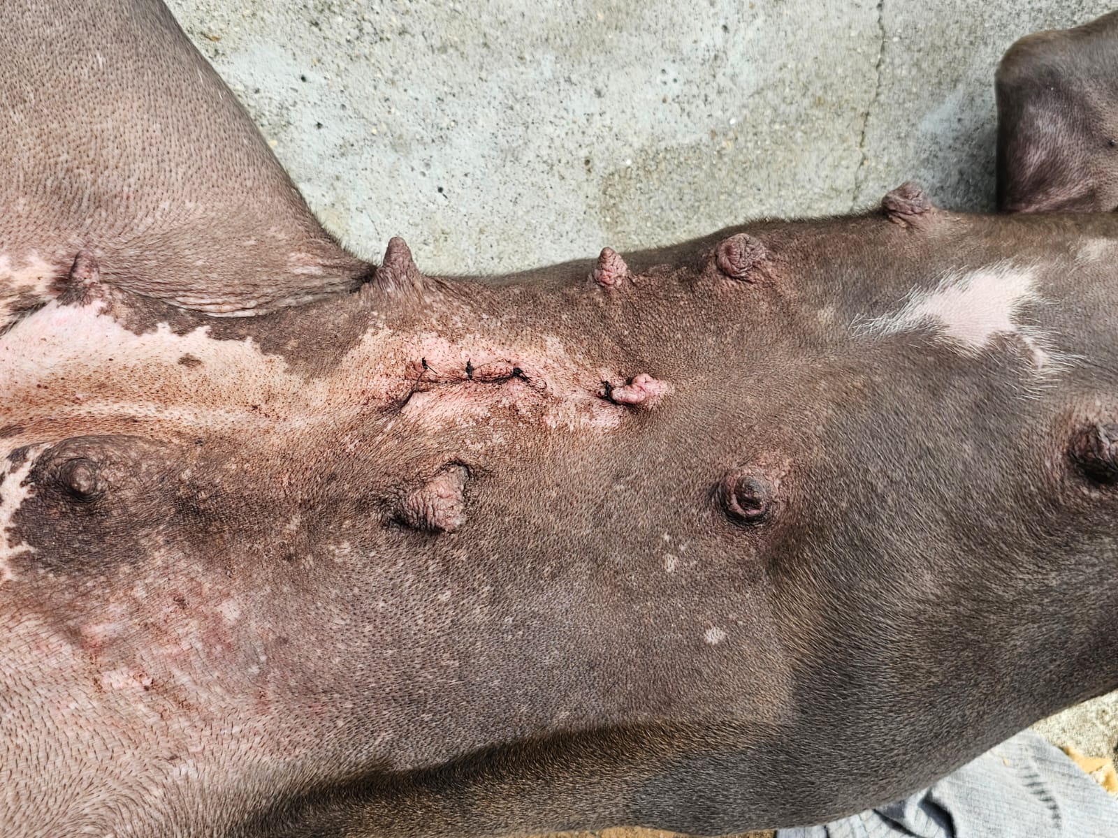 Ao chegarem ao local, os policiais encontraram uma cadela filhote, sem raça definida, em estado de extrema magreza, desidratação e apatia. O animal estava infestado de carrapatos e não tinha acesso a água limpa. Além disso, foi constatado que a responsável pelo animal não havia procurado assistência veterinária, mesmo diante do visível estado de sofrimento da cadela.