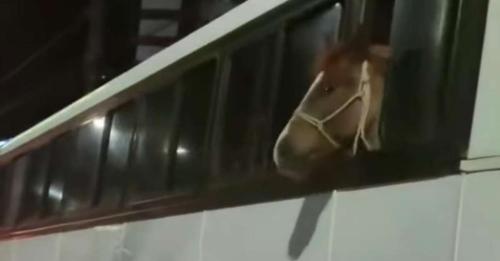 Um cavalo foi flagrando ‘viajando’ dentro de um ônibus no trânsito de Criciúma, em Santa Catarina. Segundo as normas do Conselho Nacional de Trânsito (Contran), o transporte do animal no coletivo é irregular.
