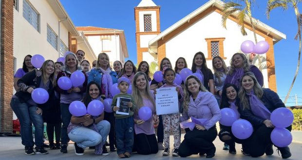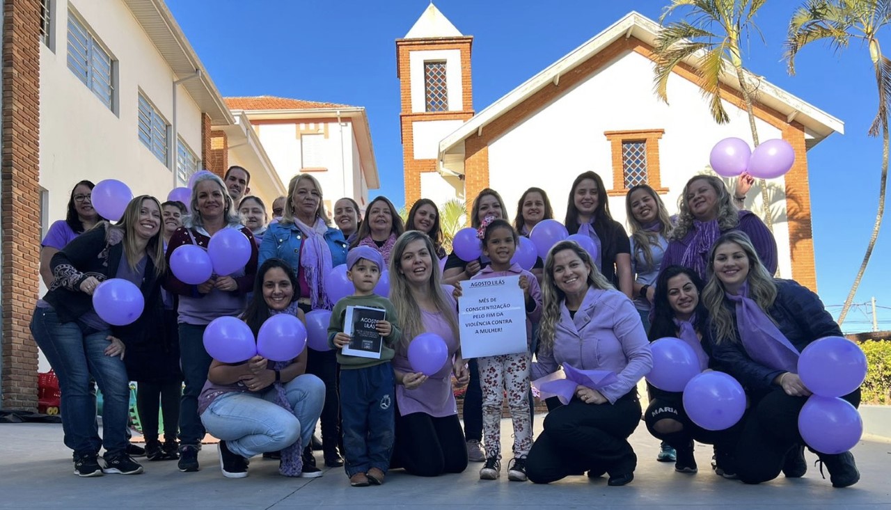As crianças da do Centro de Educação Infantil José Luiz Amat realizaram uma ação de conscientização sobre o Agosto Lilás, mês dedicado ao combate à violência contra a mulher.